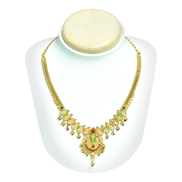 This design has multi colors across the necklace and with mixed droplets. Good design for regular function wear. Weight range starts from 21.000 grams to 25 grams